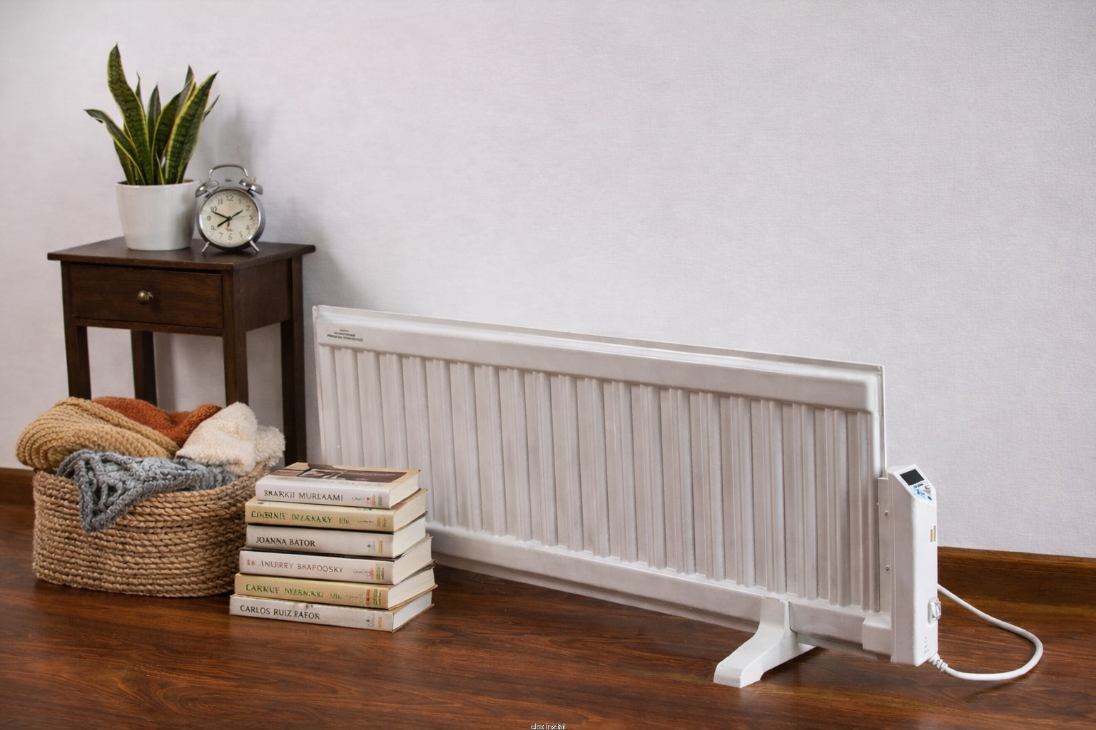 Grzejnik jest płaski, lekki i w śnieżnobiałym kolorze. Pracuje cicho, jest bezwonny, nie wysusza powietrza i nie spala kurzu. Idealny do pomieszczeń dla dzieci, alergików i ludzi chorych. Grzejnik na wyposażeniu posiada komplet stopek pozwalających na ustawianie go w dowolnym miejscu oraz komplet wieszaków umożliwiających zawieszenie na ścianie.