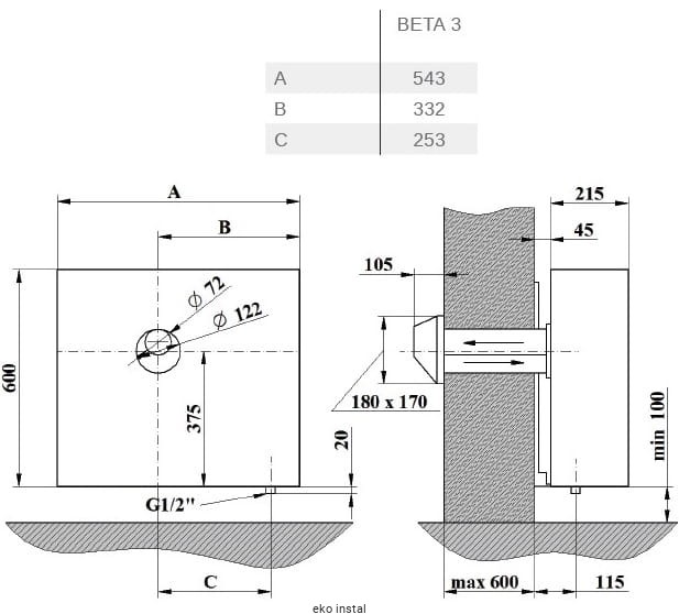 - wymiary wys. 600 x szer. 543 x gł. 215 mm,