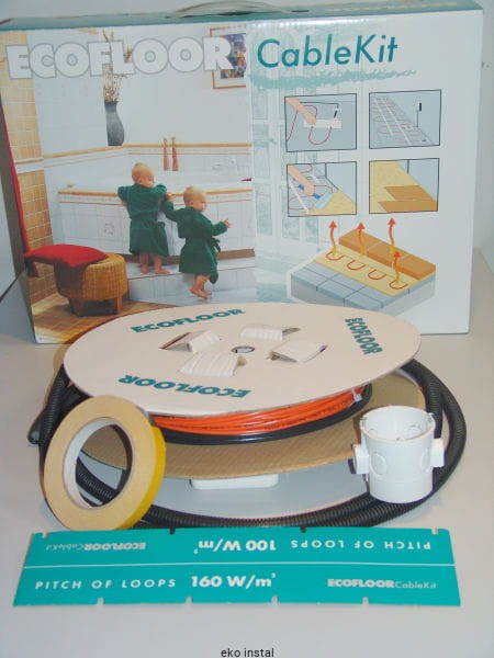 Zestaw grzejny do bezpośredniego układania pod płytkami zamiast maty grzejnej. Proste układanie na powierzchniacho skomplikowanych kształtach. Gęstość mocy grzejnej 100 W/m , 130 W/m lub 160 W/m w zależności od odstępów pomiędzy układanym kablem - zgodnie ze wzornikiem odstępów. Długość przewodu zasilającego - 3 m.