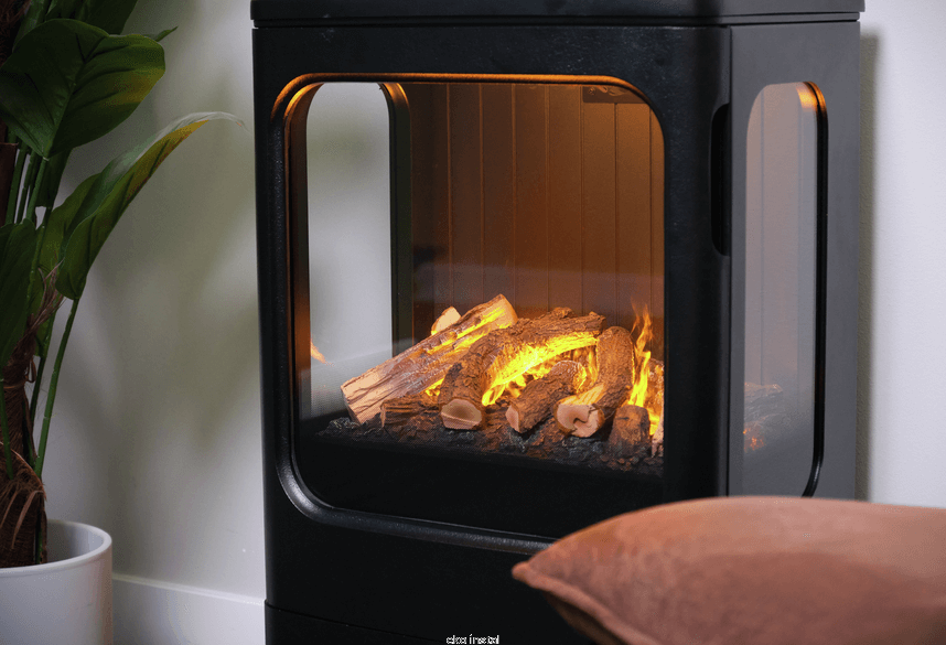 - technologia Optimyst® tworzy trójwymiarowy efekt płomienia przy użyciu zimnej pary wodnej. Obraz ognia wzbogaca dodatkowo wzbogaca realistyczny zestaw polan oraz dźwięk płonącego drewna,