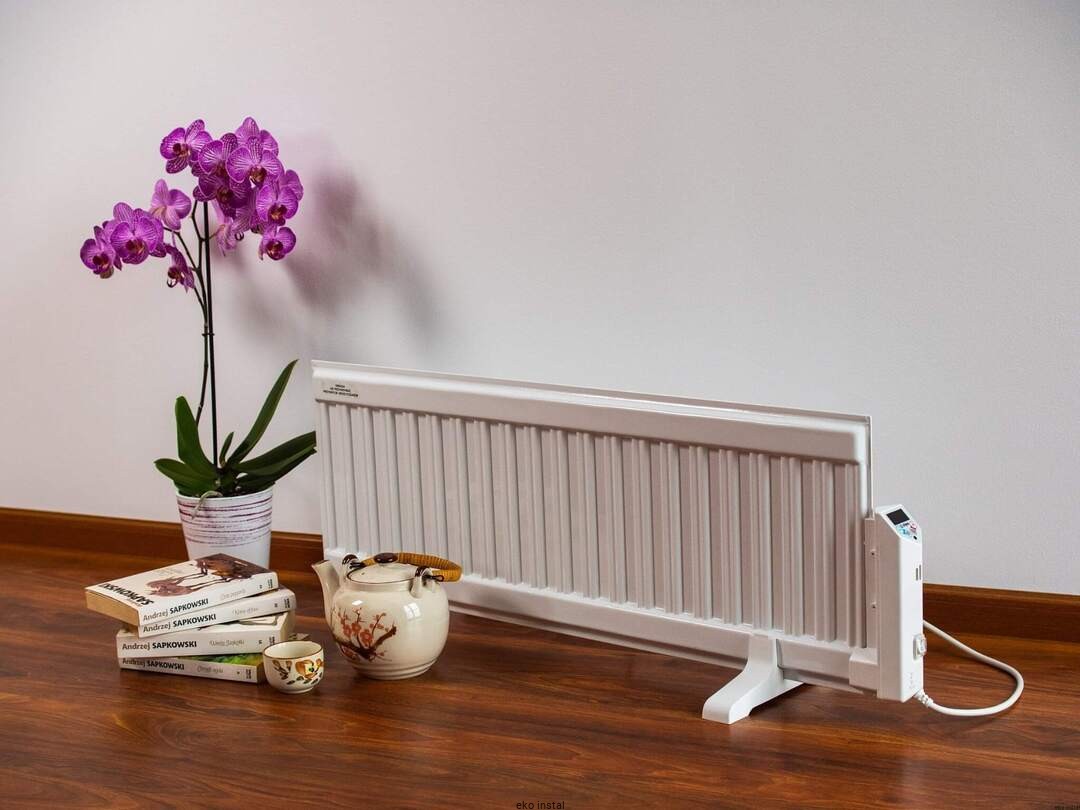 Grzejnik jest płaski, lekki i w śnieżnobiałym kolorze. Pracuje cicho, jest bezwonny, nie wysusza powietrza i nie spala kurzu. Idealny do pomieszczeń dla dzieci, alergików i ludzi chorych. Grzejnik na wyposażeniu posiada komplet stopek pozwalających na ustawianie go w dowolnym miejscu oraz komplet wieszaków umożliwiających zawieszenie na ścianie.