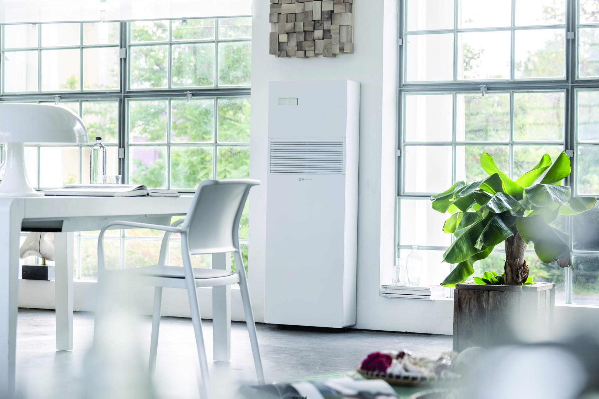 MONOKLIMA 2.12 HP VERTICAL to klimatyzacja bez jednostki zewnętrznej, która wymaga jedynie 2 otworów w ścianie zewnętrznej o średnicy 16 cm. Monoklima pozwala na schłodzenie i ogrzewanie dowolnych pomieszczeń, w których jest ściana zewnętrzna.